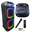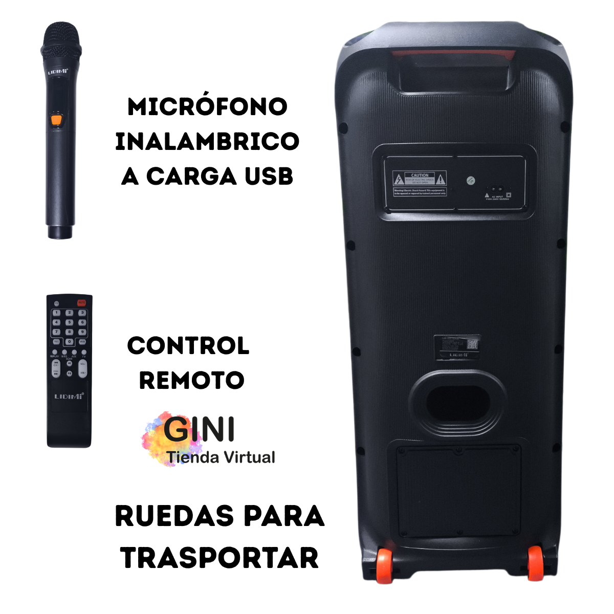 Su formato portátil con ruedas y batería recargable permite llevarlo a cualquier lugar con total comodidad. Además, incluye micrófono inalámbrico, lo que lo convierte en una opción perfecta para eventos, reuniones, clases, karaoke o uso profesional.