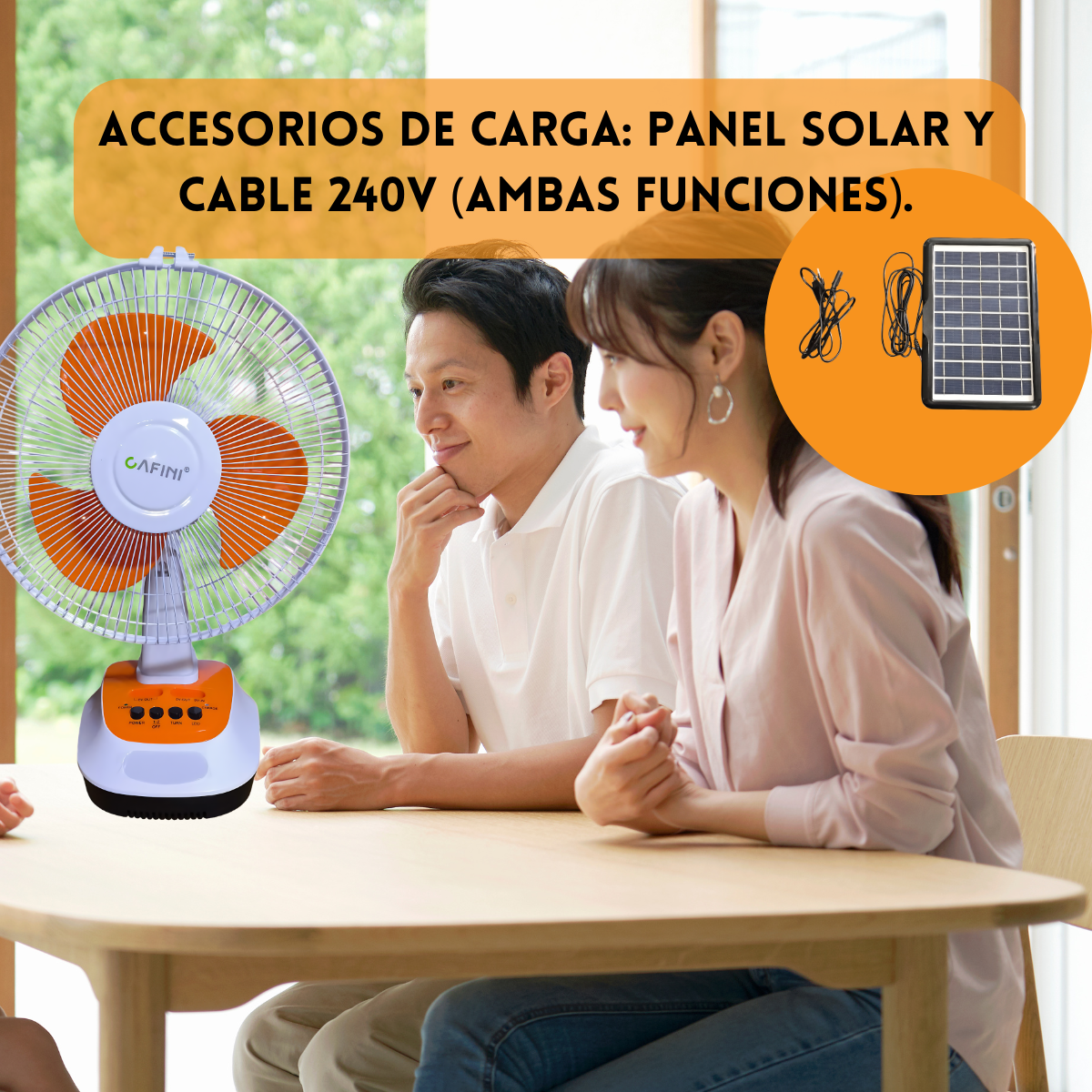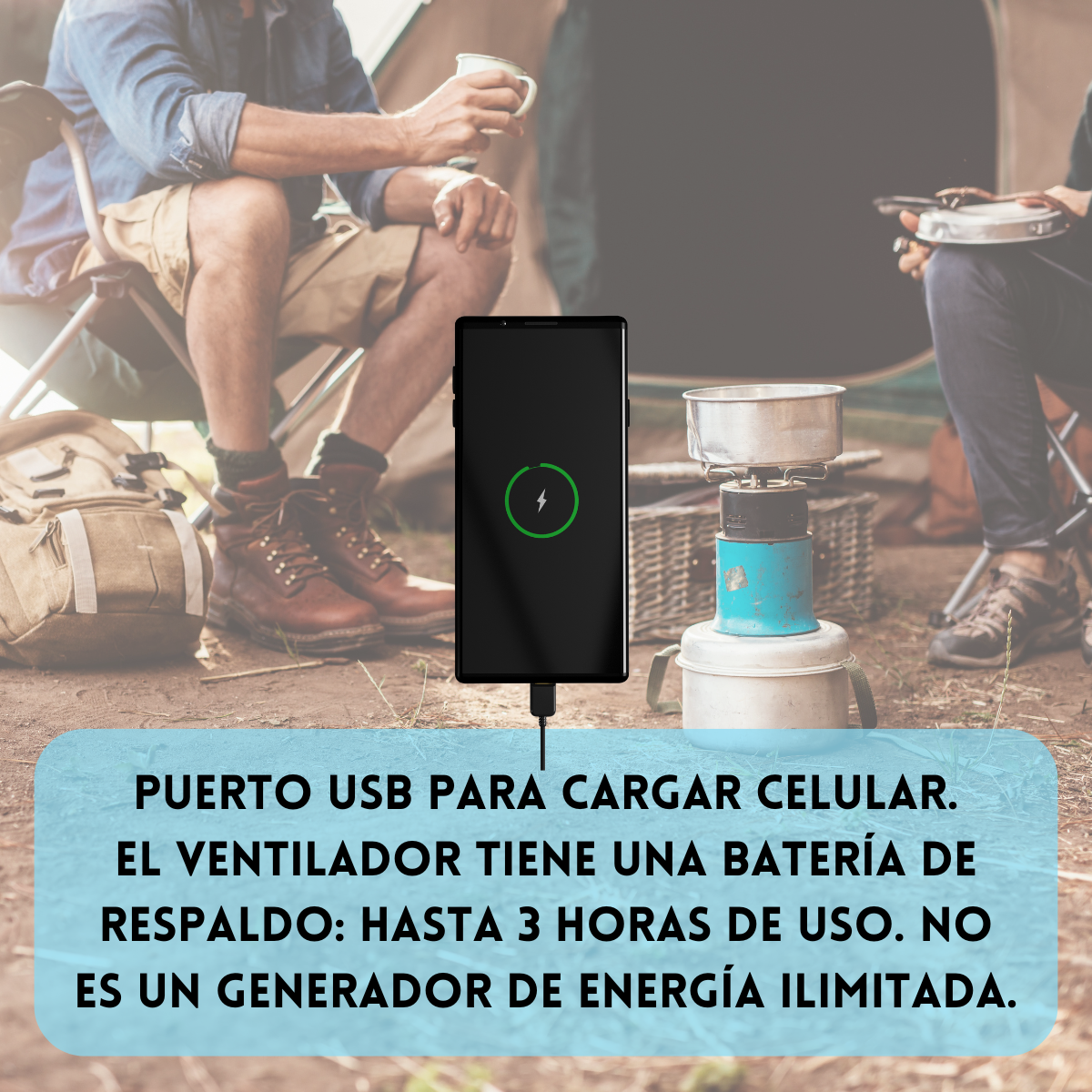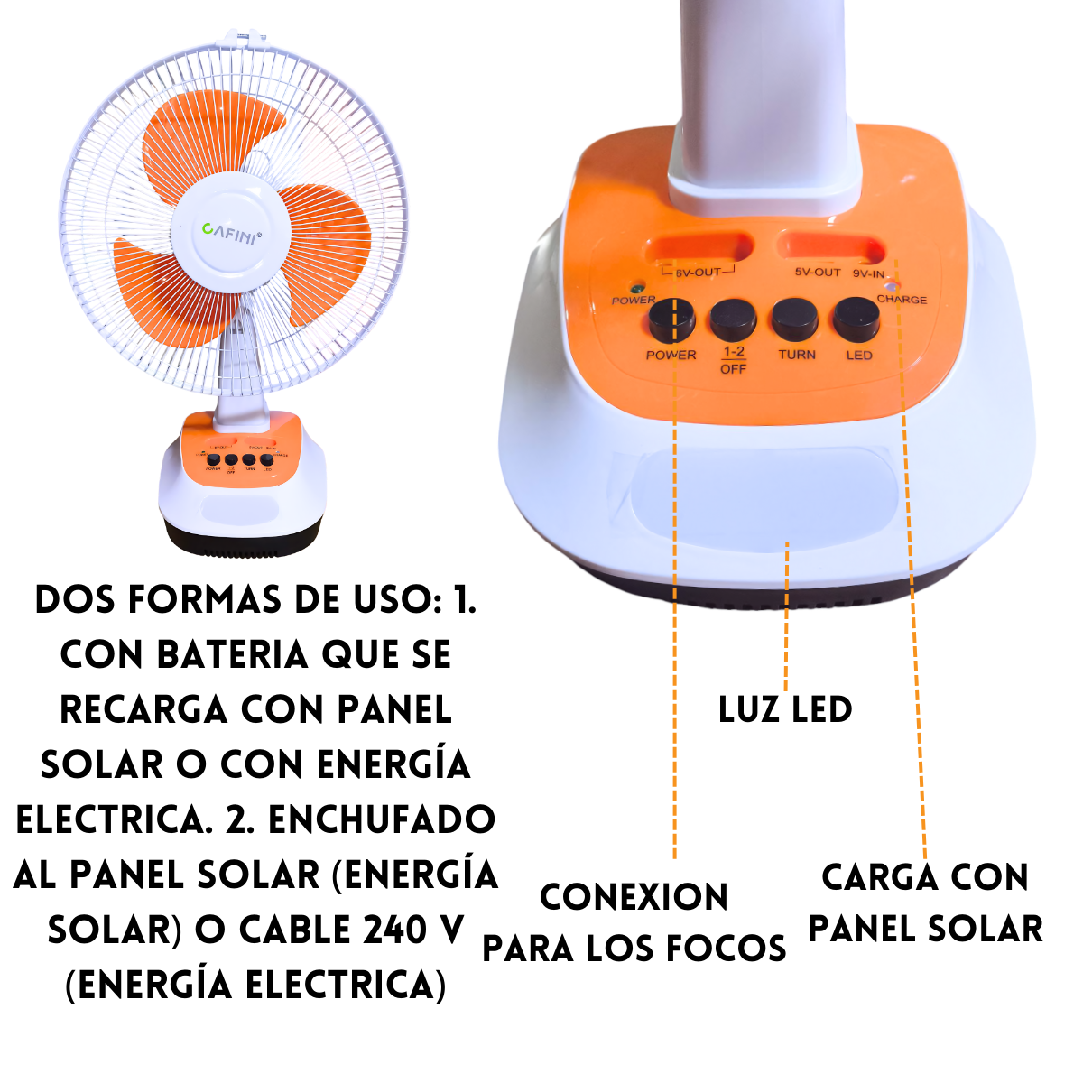 Funciona con energía solar y corriente eléctrica, incorporando un panel solar de 6W y una batería recargable interna, lo que lo convierte en una solución perfecta para cortes de luz, camping, jardines, terrazas o espacios sin enchufe cercano. Además, incluye iluminación LED, sumando un extra clave para uso nocturno.