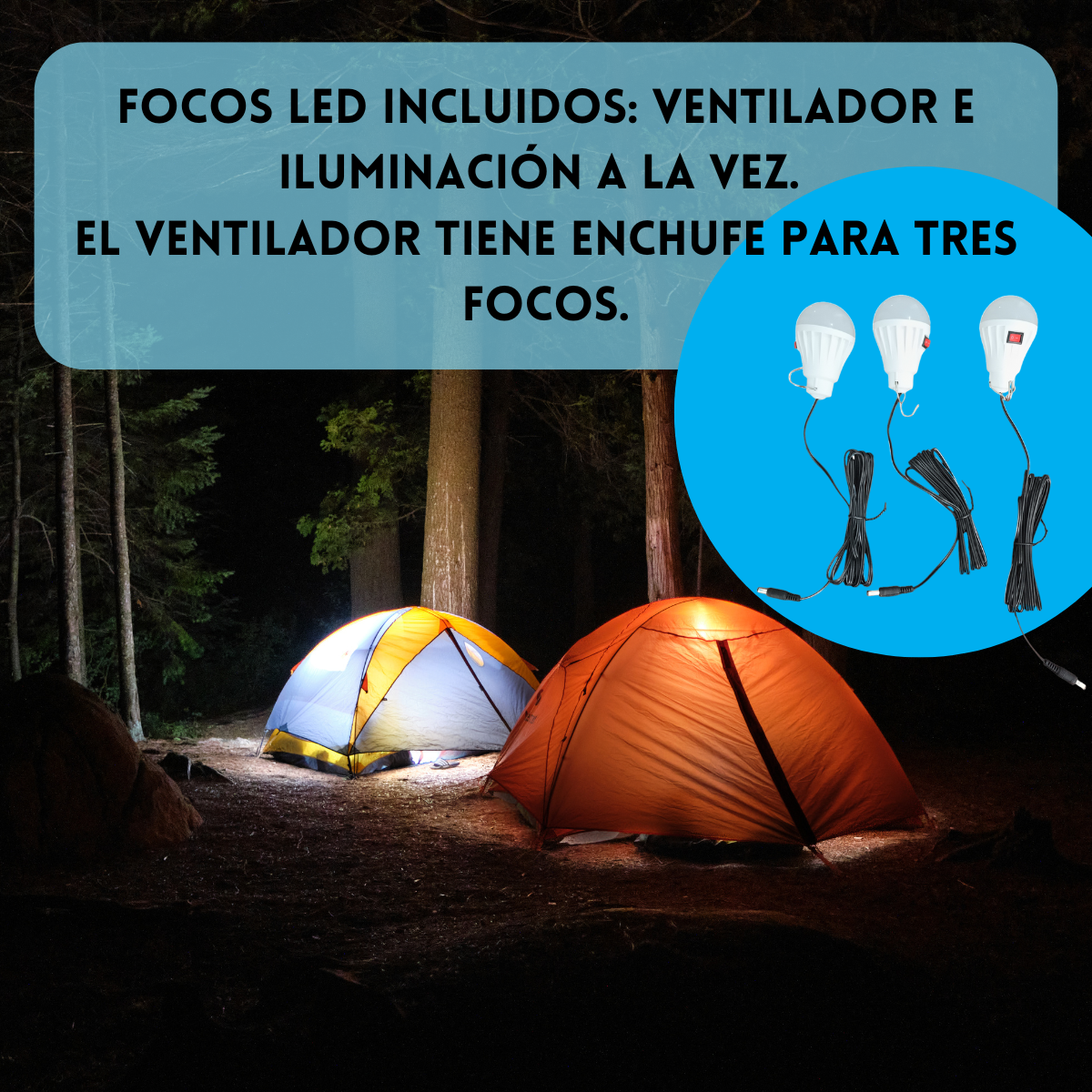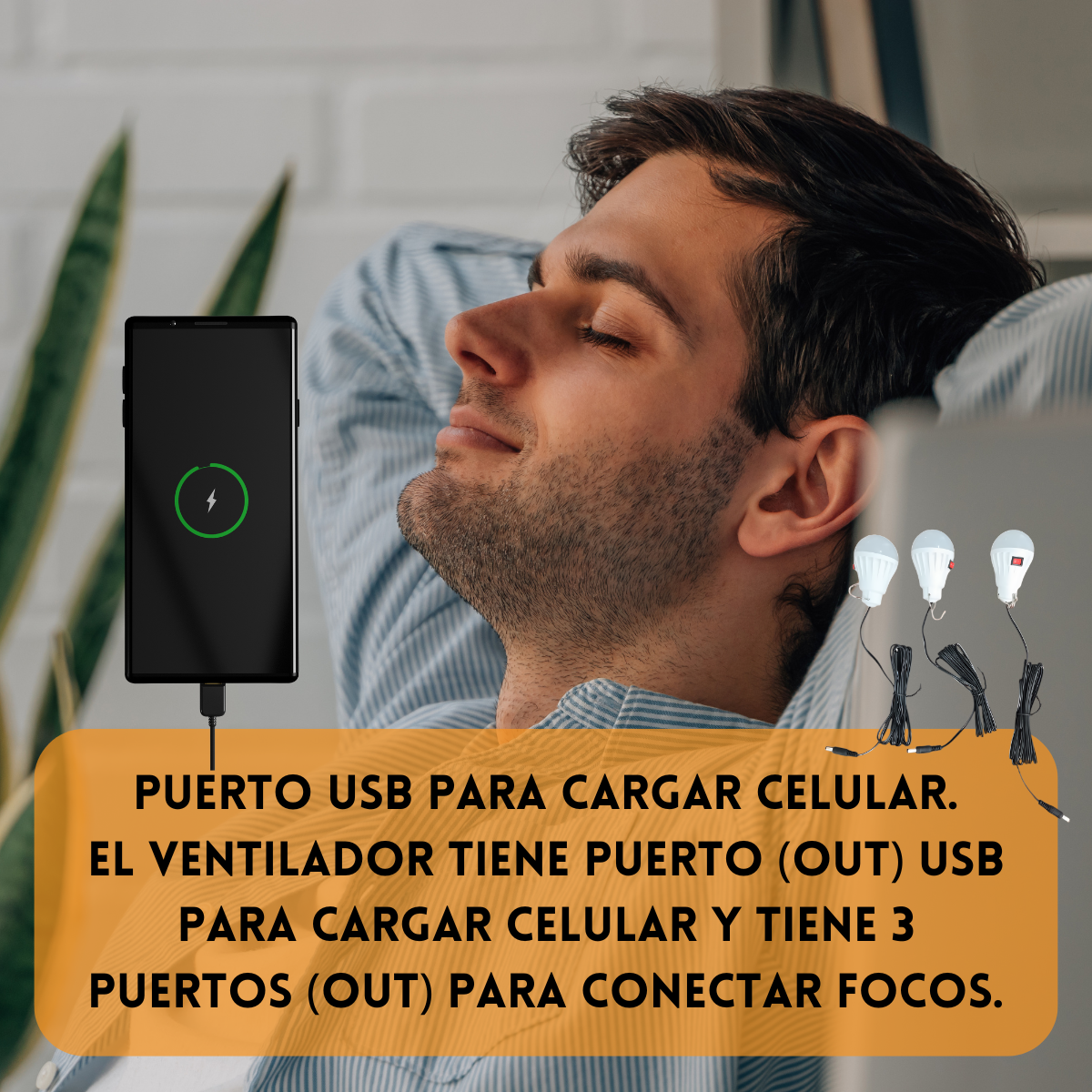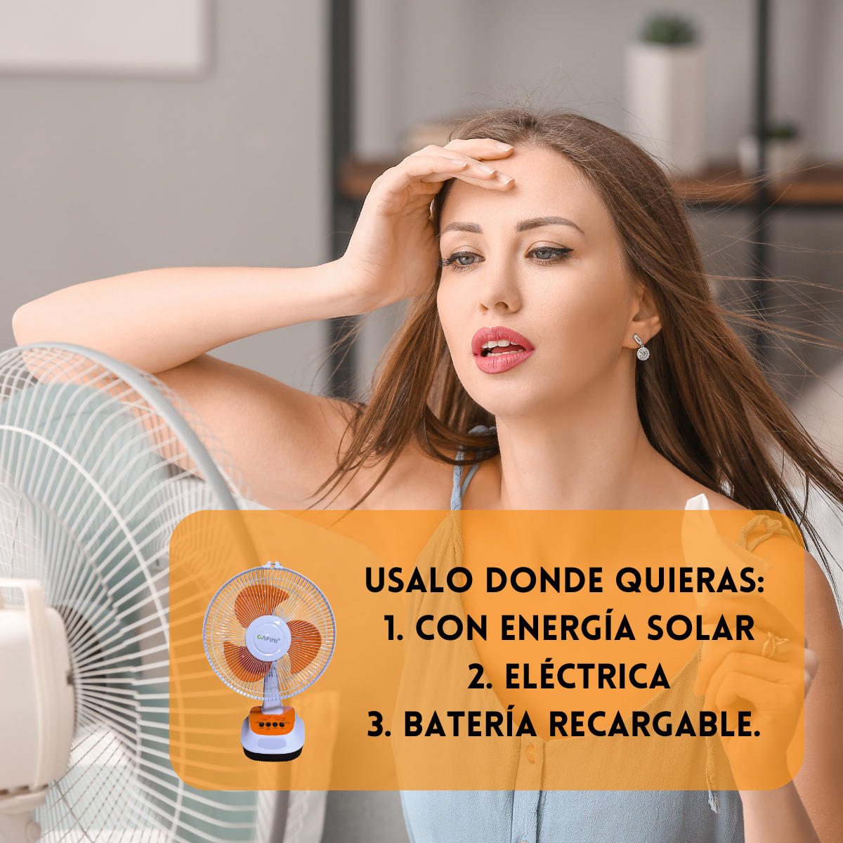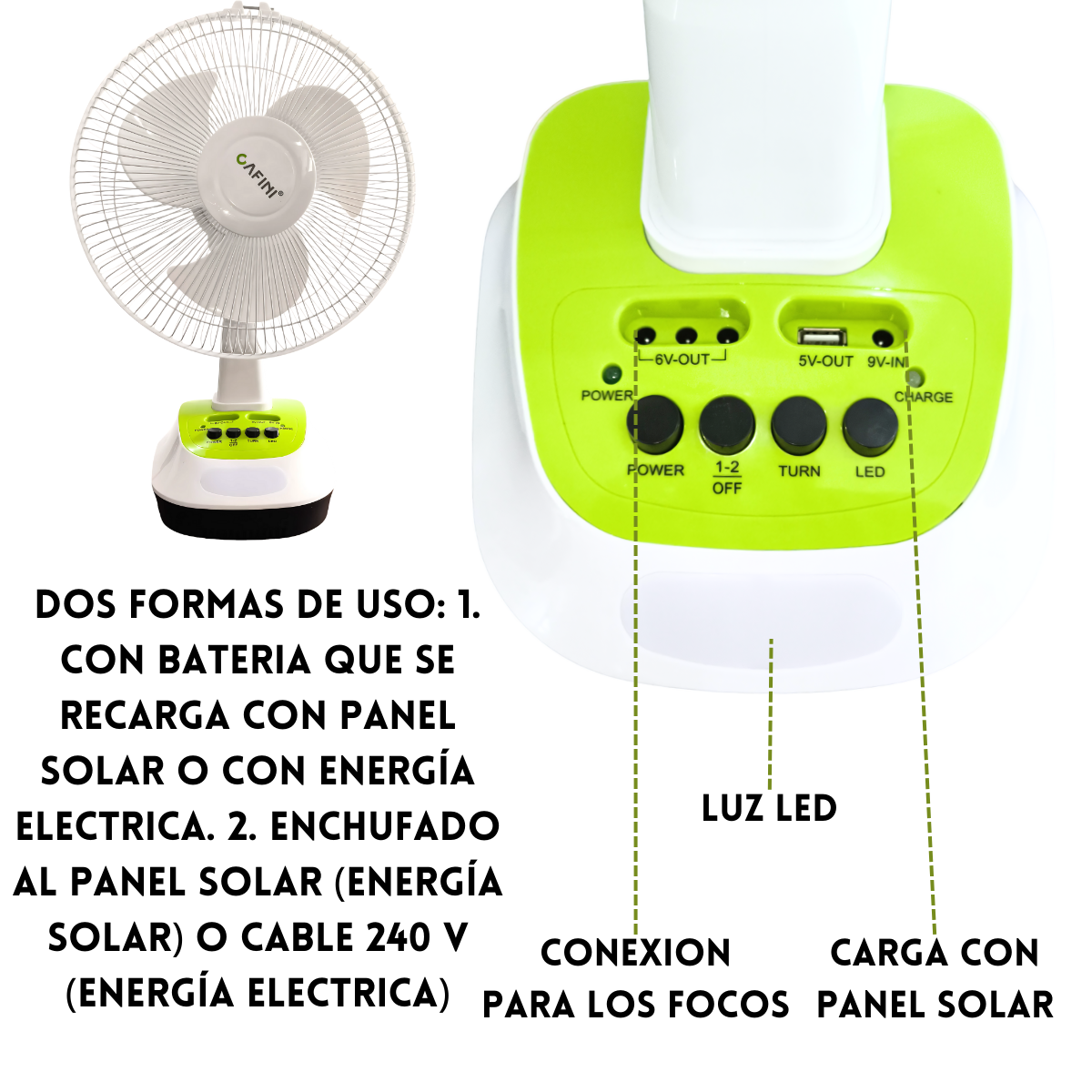 Funciona con energía solar y corriente eléctrica, incorporando un panel solar de 6W y una batería recargable interna, lo que lo convierte en una solución perfecta para cortes de luz, camping, jardines, terrazas o espacios sin enchufe cercano. Además, incluye iluminación LED, sumando un extra clave para uso nocturno.