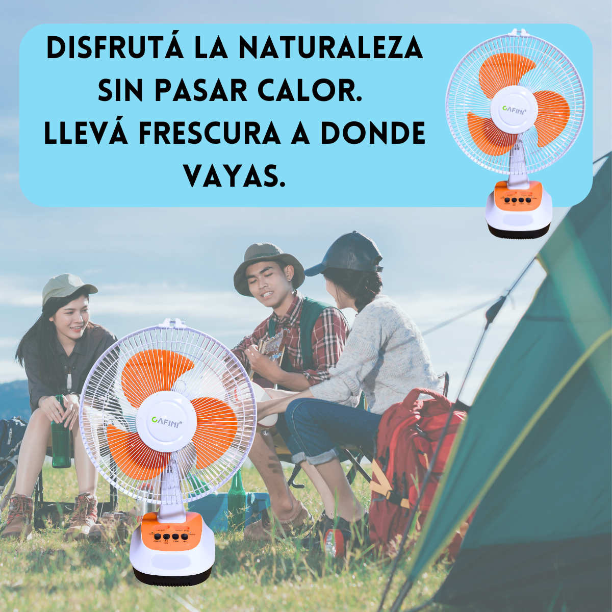 Combatí el calor en cualquier lugar y sin depender de la red eléctrica con el ventilador portátil recargable Cafini CN-F2695BT. Diseñado para ofrecer frescura, practicidad y ahorro energético, es ideal tanto para el hogar como para exteriores.