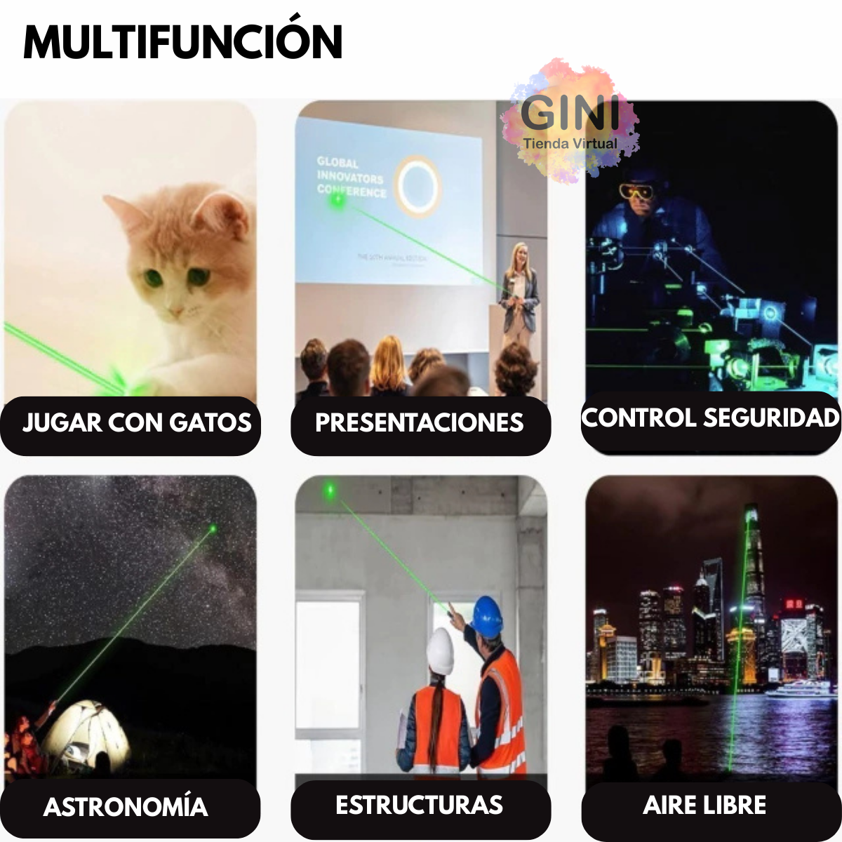 Gracias a su láser verde de alta potencia, ofrece una excelente visualización incluso en espacios amplios o con iluminación ambiental, siendo ideal para exposiciones, presentaciones, seguridad en eventos, boliches, obras y construcciones.