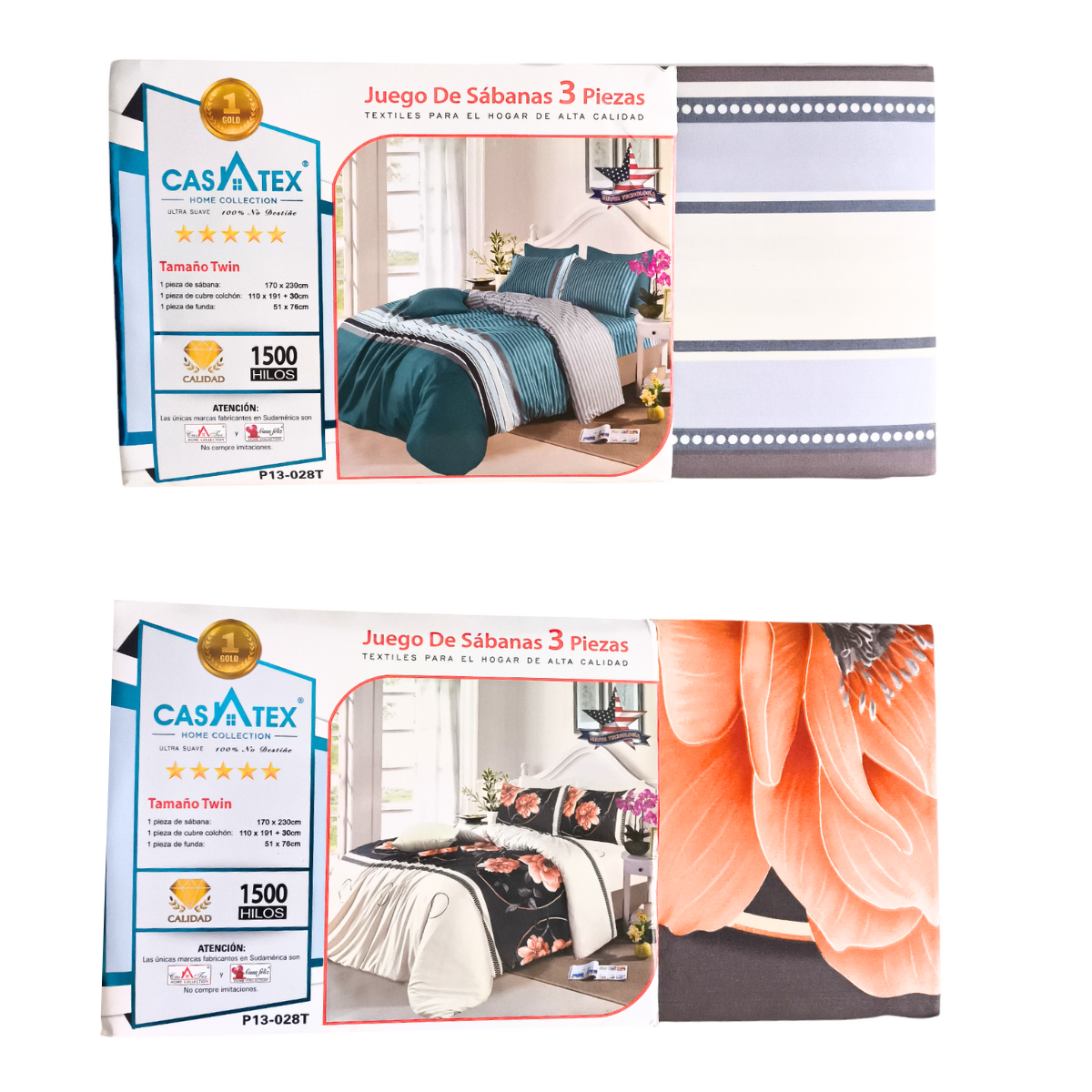 Esta publicación corresponde a un PACK A PRECIO MAYORISTA DE JUEGOS DE SÁBANAS tamaño 1 1/2 plazas/ Twin, marca Casatex – Home Collection.