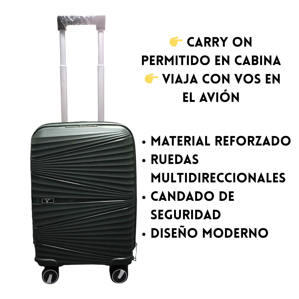 Viajá cómodo y sin despachar equipaje con esta valija Carry On, diseñada especialmente para vuelos nacionales y uso como equipaje de mano. Sus medidas reglamentarias permiten subirla al avión y llevarla siempre con vos.