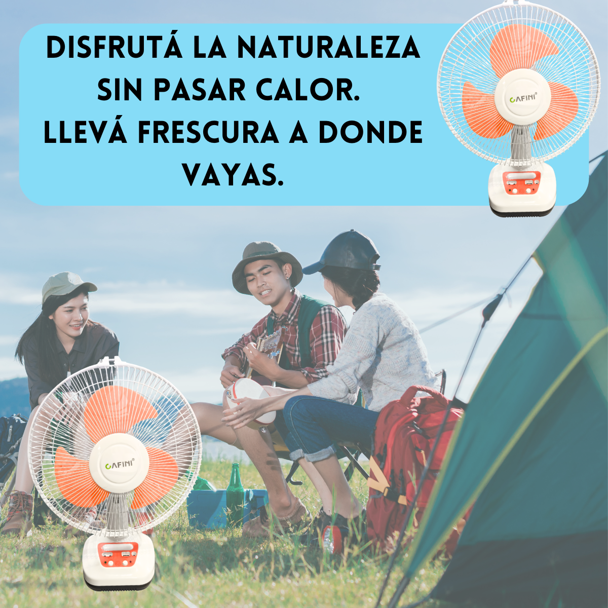 Combatí el calor en cualquier lugar y sin depender de la red eléctrica con el ventilador portátil recargable Cafini CN-F2512BT, una solución práctica, eficiente y sustentable para el hogar y exteriores.